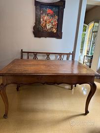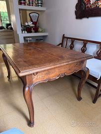 Splendido tavolo antico piemontese stile barocchetto, in legno di noce, originale. Dotato di prolunghe