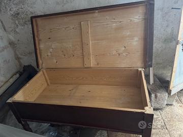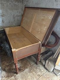 Un autentico tavolo cassapanca detto “Matterabanca”, proveniente dalla tradizione contadina pugliese. Risale con ogni probabilità ai primi dell’800, realizzato interamente in legno massello con gambe tornite e struttura robusta, ancora originale.