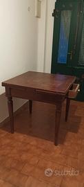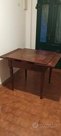 tavolo romagnolo quadrato in noce,antico, tenuto bene,allungabile,con un cassetto,perfetto .