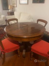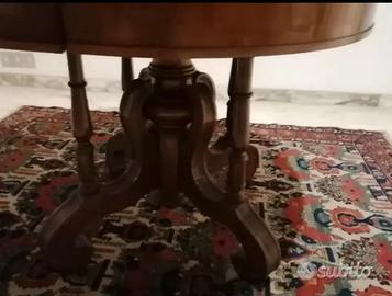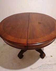 Elegante tavolo antico rotondo allungabile in legno massello, con base centrale lavorata e struttura solida. Il tavolo è stato restaurato ed è in buone condizioni pronto all’uso. Il piano centrale è allungabile, mancano le prolunghe originali che possono essere sostituite con due tavole di legno della misura desiderata. Le gambe sono state rifatte durante il restauro. Ideale per soggiorno o sala da pranzo. Prezzo trattabile. Solo ritiro in sede.