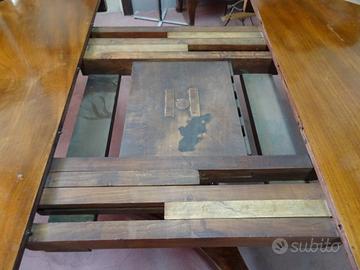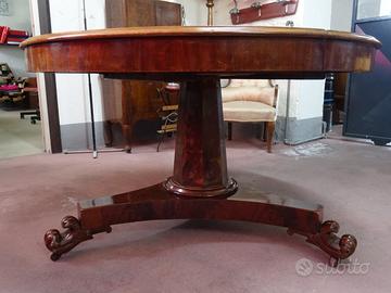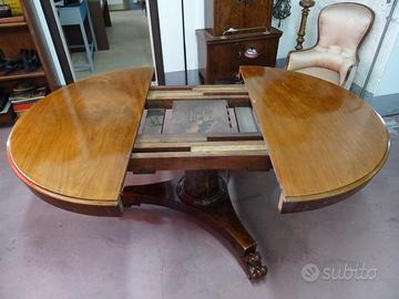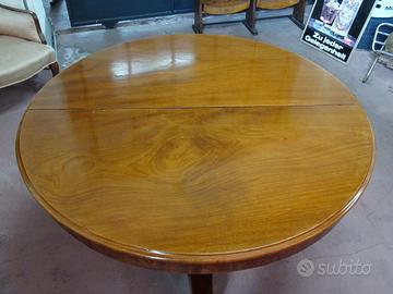 Tavolo Antico rotondo stile Carlo X allungabile in noce,gambo centrale sfaccettato,((prolunghe non disponibili))