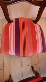 Tavolo in noce rotondo con 6 sedie rivestite in tessuto velluto pregiato. Diametro 110 cm