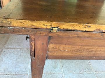 Il piano del tavolo rotea nell'aprirsi, all'Interno forma una madia che in origine serviva per contenere la frutta, sfruttabile ora per riporvi tovaglie o altro.