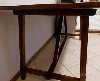 Tavolo 180x78x80. Acquistato 40 anni fa da antiquario. Piano del 1600, proveniente da un monastero, gambe rifatte in noce. Un angolo del piano necessita di sistemazione.