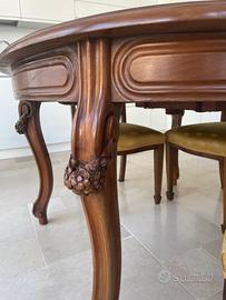 Tavolo antiquariato inglese allungabile con prolunghe sino a 260 mt + 4 oggetto di pregio con intarsi in ottime condizioni che all’occorrenza diventa elegante tavolino di servizio.