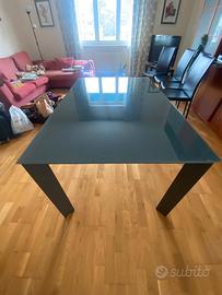 Vendo tavolo con piano cristallo color antracite lungo 140x90 cm allungable a 220cm. Pochi segni di usura. Disponibile per ulteriori foto più dettagliate. Trasporto a vostro carico.