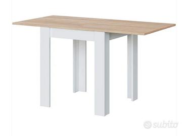 Tavolo ausiliare con apertura a libro, colore rovere canadian e bianco artificiale Cm. 67 x 67/135 x 79H