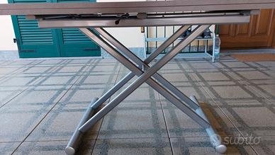 Tavolo apertura a libro regolabile in altezza colore grigio cemento. Dimensioni chiuso: 70x110 Dimensioni aperto: 140x110