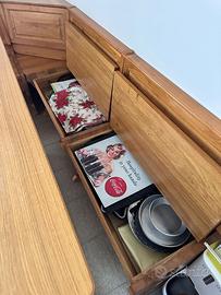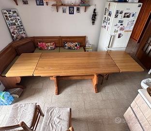 Si vende set cucina completo con ottimo tavolo rettangolare apribile, cassapanca e sedie. Le misure sono: - chiuso: 168 x 79 cm - completamente aperto: 269 cm La cassapanca ha l'angolare e ben 3 vani a pozzetto per riporre oggetti. Assieme al tavolo si vendono anche 4 sedie robustissime, tutte sempre in legno massello. Il set è pesante, robusto e super resistente. Se interessati possiamo inviare altre foto od altre misure. Il ritiro è a domicilio, smontaggio a carico dell'acquirente.