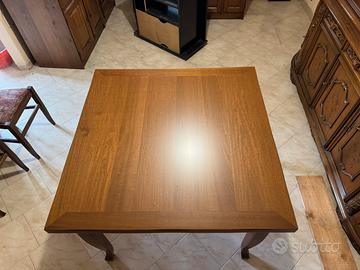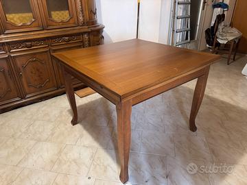 Vendo tavolo in legno di ottima qualità. Misure chiuso 104x104 h.80 Misure aperto 210x105 h.80 6 sedie in legno abbinate