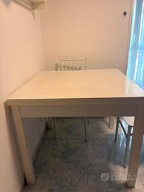 tavolo quasi come nuovo, che da quattro posti diventa 8/10 posti bianco in legno, quasi come nuovo