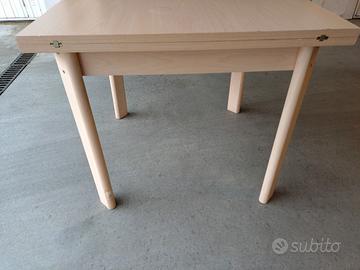 Tavolo in legno chiaro apribile a libro. Misure 90x90 (chiuso) e 180x90 (aperto). Vendo per cambio arredamento. Il tavolo è visionabile ma è già smontato. Solo ritiro a mano.