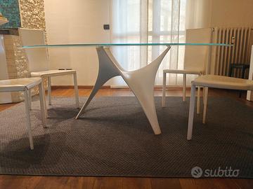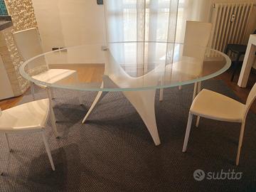 tavolo ARC Molteni di design. Piede in cemento-mattone bianco. Pianale in vetro. Tavolo ovale lunghezza 200 larghezza 130