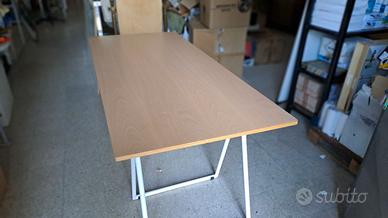 Tavolo architetto BIEFFE su cavalletti pieghevoli in metallo colore bianco - piano in multistrato di faggio lucidato - dim cm L180XP80XH75 - smontabile - INTROVABILE - OCCASIONE UNICA - trasporto e ritiro a vs carico da concordare