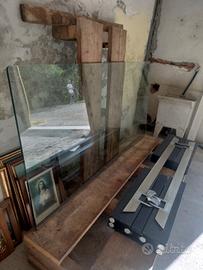 tavolo in vetro 2 x 1 con gambe in sasso di lavagna già smontato ritiro in luogo