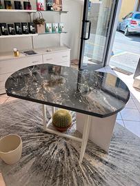 Vendesi tavolo in legno laminato effetto marmo di dimensioni 120 x 80 dotato di una base tubolare 3 x 3 in metallo verniciato. Prodotto acquistato ad Ottobre 2025 per un valore di 800€ , prezzo giustificato da fattura ancora disponibile. Condizioni perfette pari nuovo, utilizzato come arredamento di un negozio ma all’occorrenza utilizzabile anche per arredamento casalingo. Prezzo di rivendita 400 euro trattabili, si specifica che la disponibilità non e’ immediata per qualsiasi info rivolgersi al seguente numero 3348849771