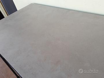 Tavolo per arredamenti esterni, giardino o terrazzo, in ferro battuto fatto a mano da un artigiano, con pianale antigraffio ed antimacchia in gres porcellanato come da foto. Misure 60 x 120 cm Prezzo leggermente trattabile.