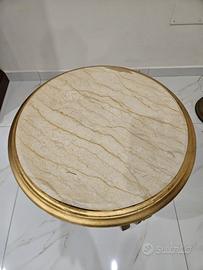 Tavolo basso arredo foglia oro con ripiano in marmo. h 50cm