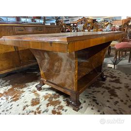 TAVOLO ART DECO ORIGINALE IMPIALLICCIATO RADICA PIEDE A BARCA. MISURE 147X100H80CM . *PROLUNGHE IN FERRO PROLUNGHE IN LEGNO