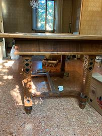 Tavolo in legno degli anni 1930. Dimensioni 100 x 130 cm e altezza 82 cm. E’ allungabile ma mancano le prolunghe originali. Dello stesso stile, eventualmente ho a disposizione anche una vetrinetta e una credenza.