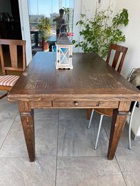 Tavolo legno massello arte povera acquistao direttamente da artigiani a Citta di Castello, 150x 95, presenta due allunghi che lo tanno arrivare a