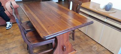 TAVOLO ARTE POVERA IN NOCE ELEGANTE 180 X 80 h. 80 CON 3 SEDIE IN OTTIMO STATO E MOLTO ROBUSTO