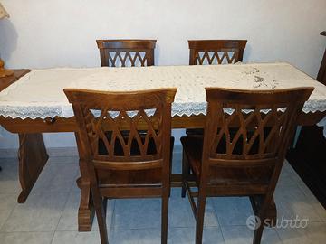 tavolo in legno arte povera, con quattro sedie in legno arte povera. per informazioni e prezzo trattabile contattatemi su questo numero: 3388274539 su whatsapp o telefonare.