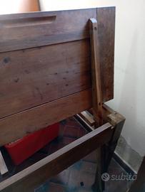 Vecchio tavolo da restaurare. 120x80 con prolunghe diventa 210x80. Sul ripiano principale è incollata una formica . da togliere e verniciare. Costruito in abete, faggio e presumibilmente ciliegio.