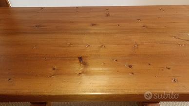 Tavolo in legno massiccio di abete relizzato da artigiano del Cadore. Dimensioni 161 x 81 cm / altezza 80 cm. Piano spessore 6 cm, finitura piallato a mano. Nessun difetto. Allungabile alle estremità con due prolunghe di 50 cm ciascuna incluse.