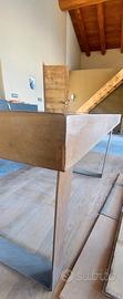 Pezzo unico: tavolo con struttura in ferro su misura e antica porta in larice incastonata, piano in vetro temperato 0,8 cm.