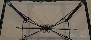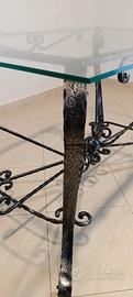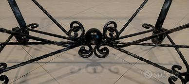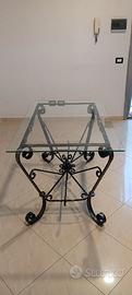 Tavolo pezzo unico in pieno ferro battuto con base in vetro realizzato tutto artigianalmente.