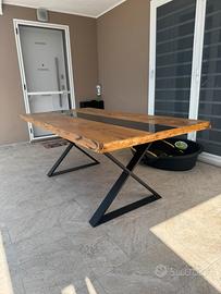 TAVOLO ARTIGIANALE IN LEGNO CON GAMBE IN FERRO