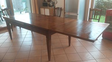 Tavolo allungabile in noce massiccio lavorato interamente artigianalmente.