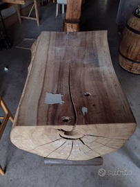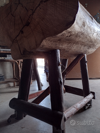 Tavolo artigianale in Olmo. Misure: lungo 110cm, largo 80cm, altezza 105cm. Il tavolo si sposta su 4 piccole rotelline (rimovibili se non servono).