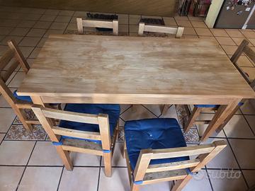 Vendo tavolo artigianale in legno di Olmo massello, completo di 6 sedie coordinate, anch’esse in Olmo massello.