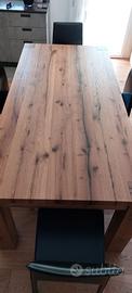 Tavolo artigianale rovere naturale,misura 200 cm di Lungezza e 95 cm di larghezza,ideale per 6 persone.Ci sono 2 prolunghe che scompaiono all'interno e permettono di allungarlo fino a 250/300 cm. Perfetto per 12 persone.Inculse 6 sedie eleganti nere in eco pelle.No offerte assurde,permute o spedizioni dall'altra parte d'Italia.