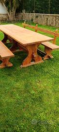 tavolo modello fratino artigianale di grandi dimensioni ( lungo 320 cm largo 88 cm alto 80 cm spessore del legno 4,5 cm) compreso nel prezzo due panche