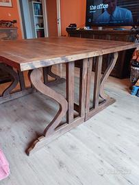 Tavolo grande espandibile, artigianato etnico indiano. Versatile (vedi foto) e pratiko da utilizzare anche come scrivania. Misure da chiuso: 83 cm altezza e 70x140cm il piano. Misure da aperto: 79 cm altezza e 140x140 cm il piano.