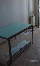 Vendo tavolo Axel Scavolini allungabile. Gambe in metallo silver e piano in vetro temperato serigrafato acidato, allunga in melaminico bianco Lunghezza 110 cm, 160 cm Larghezza 80 cm Altezza 73,5 cm No spedizione, solo ritiro a Torino, zona metro Marconi.