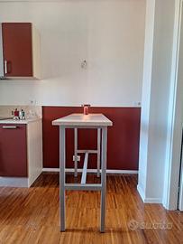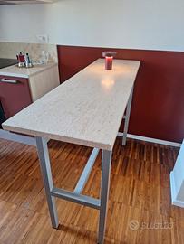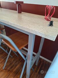 Bancone in travertino L. 150x45 H. 100 cm con gambe in ferro verniciato grigio. in vendita anche 4 sgabelli ikea separatamente. Zona Ostiense-Piramide. Piano settimo, trasporto a carico dell'acquirente.