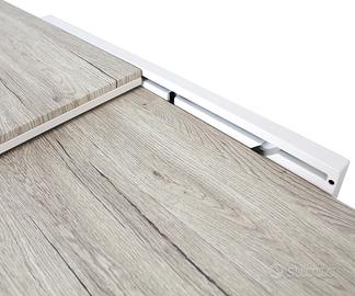 MATERIALE: Piani rivestiti di PVC colore legno rovere sbiancato spessore 1,2 cm. Struttura in metallo colore beige, gambe 7 x 2,5 cm. Piedini in plastica. Utilizzo Domestico. Sono da interno. Portata tavolo 40 kg.