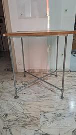 Tavolo in rovere e tubi zincati. Misure 80x85 altezza 93cm. molto resistente. Usato in cucina con i sgabelli da bar. Fatto tutto da un fabbro.