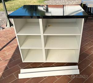 Tavolo uso bar con 2 sedie I mobili alla base sono pensili Ikea METOD 60x60x80 e 40x60x80, per un totale di 100x60x80 (largxprofxalt) con gambe e zoccolo. Il piano nero effetto marmo misura 110x80.