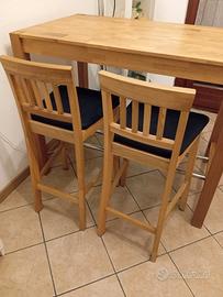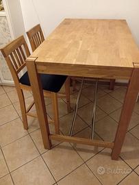 Vendo bellissimo tavolo marca Jysk in legno massiccio corredato da due sgabelli con seduta morbida blu scuro. Ottime condizioni! Misure tavolo: cm 70x115 - altezza 95 cm. Ritiro a carico dell'acquirente a Mestre.
