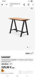 vendo tavolo bar 71x128 h105 color rovere naturale più 3 sgabelli bar in tessuto marrone h105 59x57