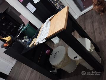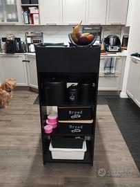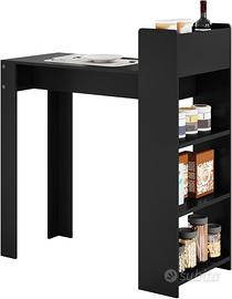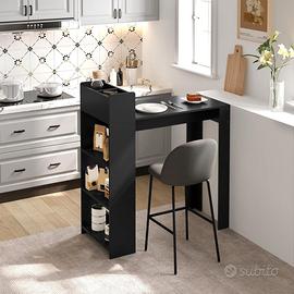 TAVOLO DA BAR CON RIPIANI PORTAOGGETTI: Il tavolo bar per la colazione è progettato con 2 scomparti aperti e 3 ripiani laterali con pannelli posteriori. Consente di riporre bottiglie, posate, spezie o utensili da cucina con un facile accesso. Piano spazioso (110x48 cm), resistente e facile da pulire, questo tavolo cucina offre molto spazio per un pasto o un drink con la famiglia e gli amici. Il piano alto 100cm può essere adattato ad un'ampia gamma di sgabelli da bar. Realizzato in legno ingegnerizzato di qualità E1 con impiallacciatura in melamina, che conferisce al tavolo una struttura robusta, stabile e durevole e una capacità di carico di 120kg. NO SPEDIZIONE SOLO RITITO A DOMICILIO ROMA OSTIENSE.