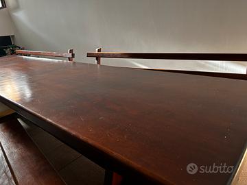 Vendo tavolo in legno, lunghezza del tavolo 4 metri con quattro panche da due metri l una, il tavolo è abbastanza pesante in quanto è un legno pregiato pagato 12700 euro