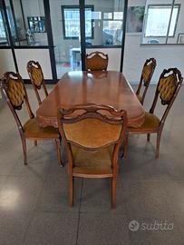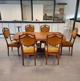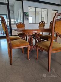 Tavolo barocco con n.6 sedie in velluto Usati