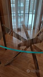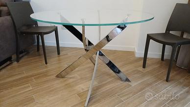 Tavolo BARONE Bontempi tondo con piano in cristallo e piedi in metallo. Ottime condizioni, come nuovo