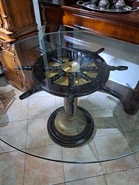 tavolo stile marinaro base realizzata con un timone piano in cristallo spesso 3cm diametro 120 perfetto stato....M&P ANTICHITÀ siamo un negozio specializzato in antiquariato vintage e shabby vendita al dettaglio e all ingrosso scarichi settimanali oltre 500 articoli in negozio, abbiamo una vasta scelta di como comodini tolette armadi letti vetrine vetrinette credenze servanti angoliere librerie tavoli tavolinetti sedie poltrone poltroncine divani lampade lampadari tappeti scrivanie scrittoi secretere ribaltine consolle quadri cornici specchi cassapanche bauli oggettistica varia idee regalo e molto altro ci troviamo a Roma zona Castelverde via Massa San giuliano 26b POSSIBILITÀ DI CONSEGNA E SPEDIZIONE IN TUTTA ITALIA